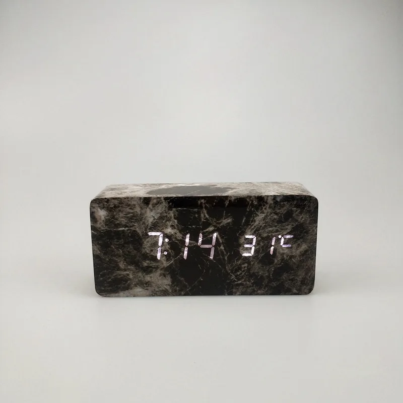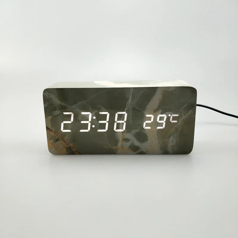 Table Clock Simple LED Marble Head Road Wooden Temperature Date Creative Voice Control Snooze Elect