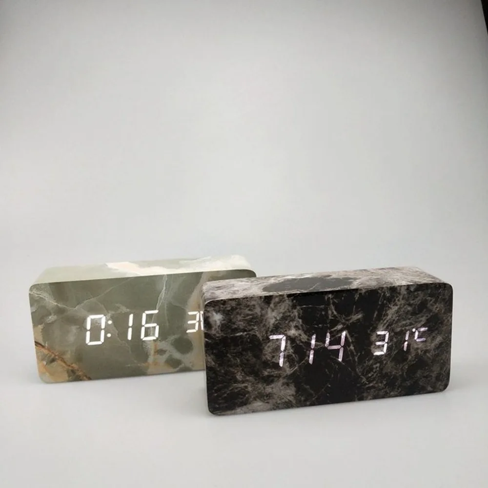 REVIEW TOP SELLER Table Clock Simple LED Marble Head Road Wooden Temperature Date Creative Voice Control Snooze Elect